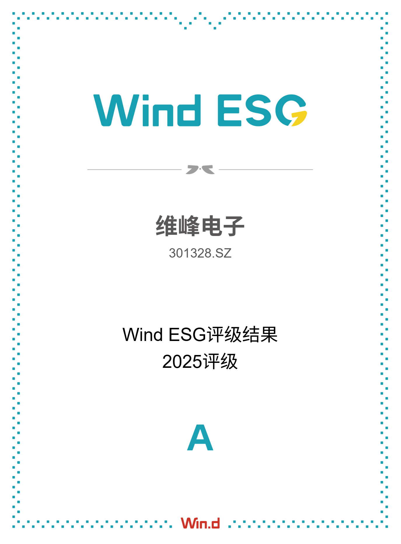 萬得ESG評級涵蓋大中華區超過12,000家企業。該指標體系融合國際標準,同時切合中國實踐,是國內資本市場評估企業綜合ESG表現的重要指標。Wcon Electronics在本次評級中被提升為A級,體現了萬得ESG作為中國權威評級機構對其綜合可持續發展能力的認可。