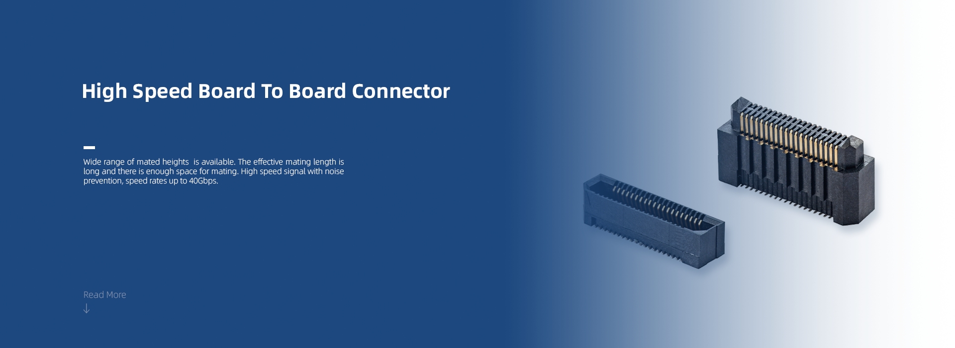 可提供多種配接高度 。有效配合長度長,有足夠的配合空間。具有抗噪聲功能的高速信號,速度高達 40Gbps。